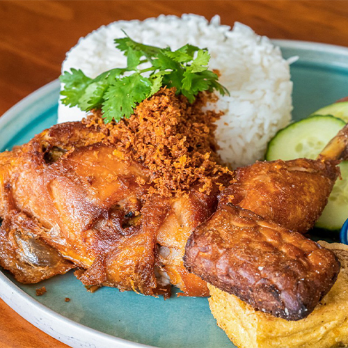 Fried Indonesian Style Chicken Maryland with rice