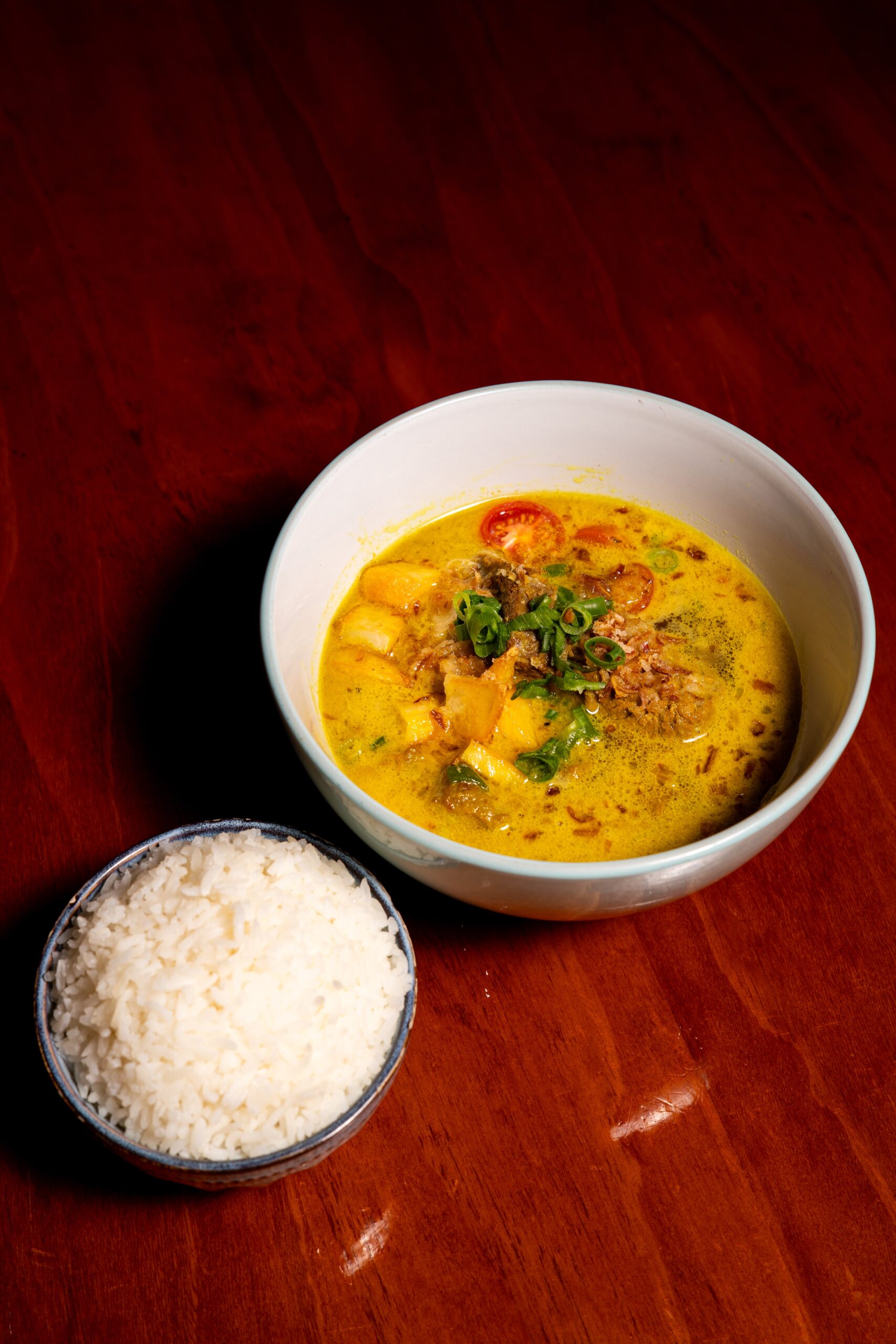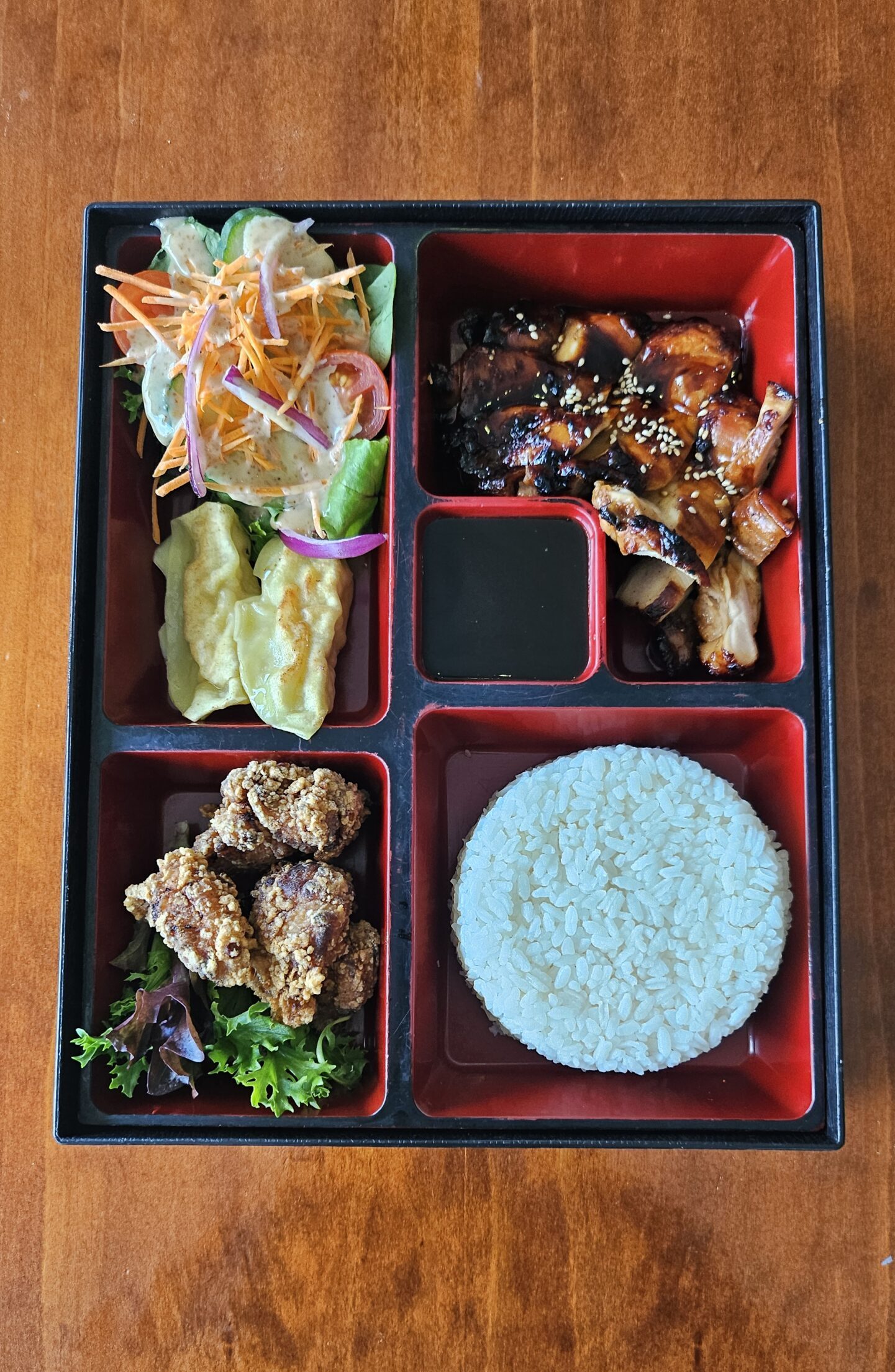 Fried Indo-style chicken Maryland with rice (GF), Grilled marinated chicken with rice (GF), Korean-style fried chicken with chips and slaw